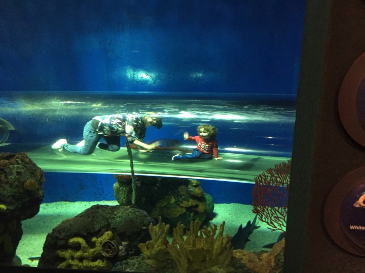 About halfway through the aquarium there is a kids area. Lots of tunnels and touching exhibitions. Maxwell couldn’t get enough of the reef shark tunnel and neither could we!
