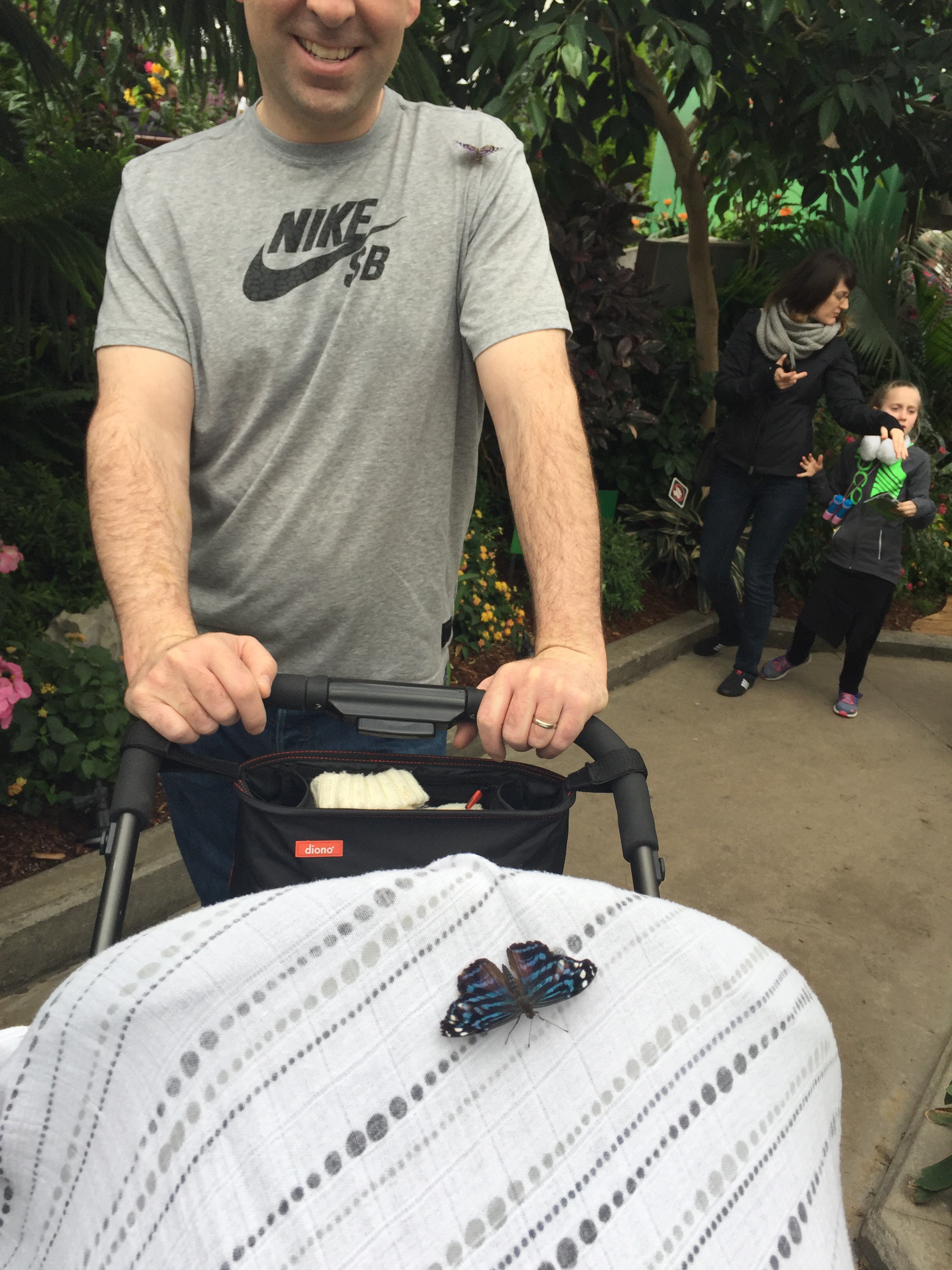 If you stand still long enough, some of the butterflies may land right on you. My husband had a few land on him and as mentioned the baby’s stroller had a few visitors.