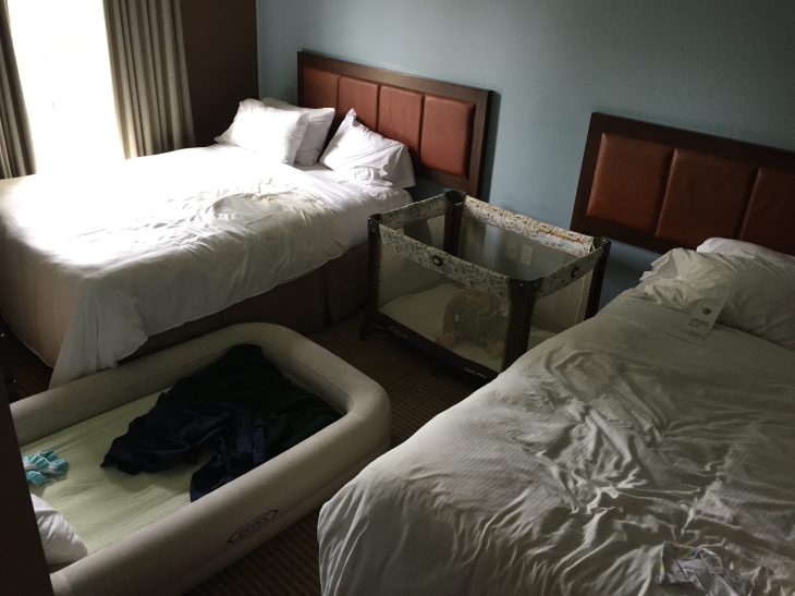 I’ve written about maximizing a hotel room in the past, and there are a lot of things you can do to make it easier. My golden rule is to always get a suite or some kind of room with a division if possible. Yes it’s a bit more, but having a divide between where the kids sleep and where the parents unwind is worth a lot.