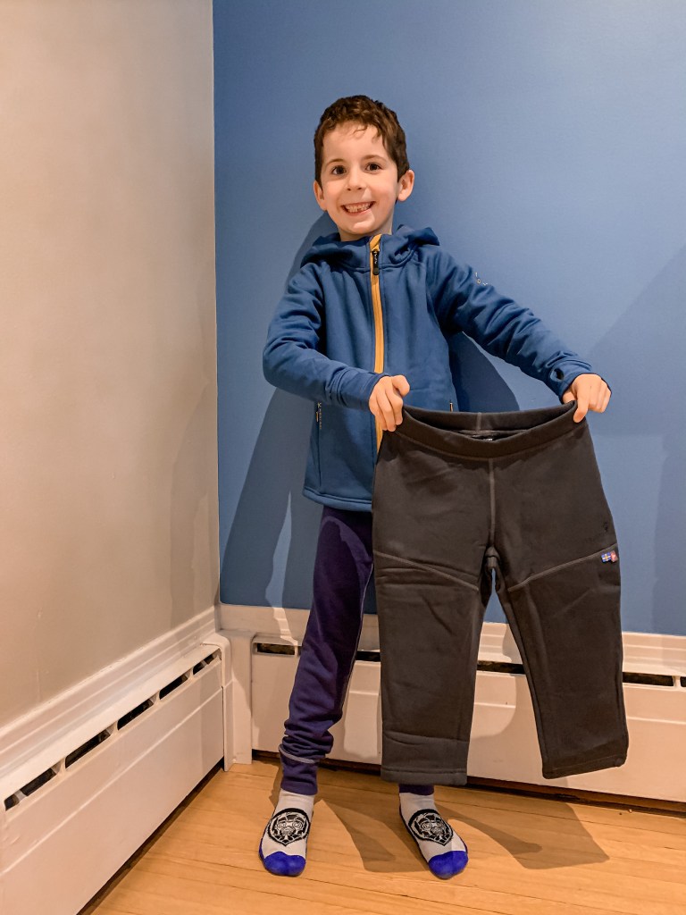 It’s important to get this part right. Even though kids don’t sweat as much as adults do, you need a moisture-wicking material, and even better if you can get a Merino wool blend. We went with the ISBJÖRN Husky base layer top and Husky base layer longjon as it’s 49% Merino Wool 46% Bamboo 5% Nylon. The fit of the base layer should be fairly fitted, not so tight that they can’t move, but close to the skin. (Think skinny jeans!)