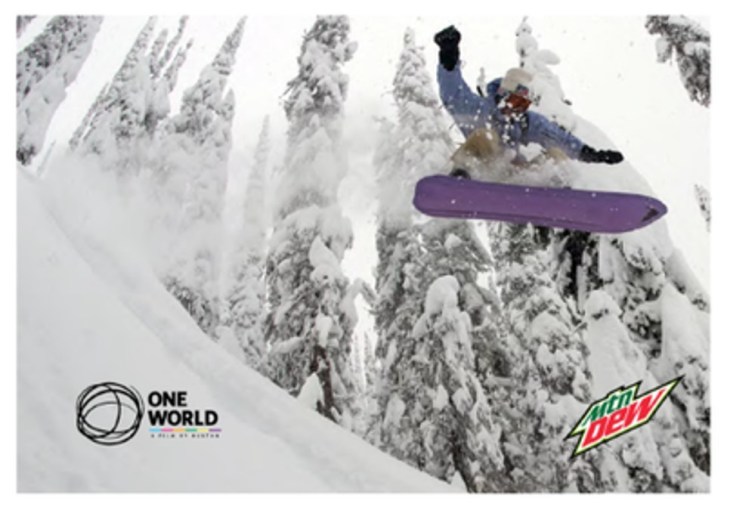Mtn Dew and Burton Snowboards unite to announce, One World, a partnership that brings both brands together around shared values of creativity, progression and sustainability in an effort to inspire others to reduce their impact.