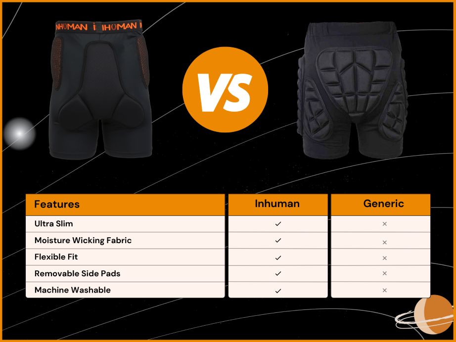 Great question. Well, Inhuman was made by people who really understand snowboarding and athletic gear. Not only are these shorts ultra slim, but they have moisture wicking fabric like your favourite athletic brand, you can remove the side pads, they pass the High Kick Test, and they are machine washable. I’ll just say, if something is not machine washable, I’m not messing around with it. As a mom I don’t have time to hand wash any garments.