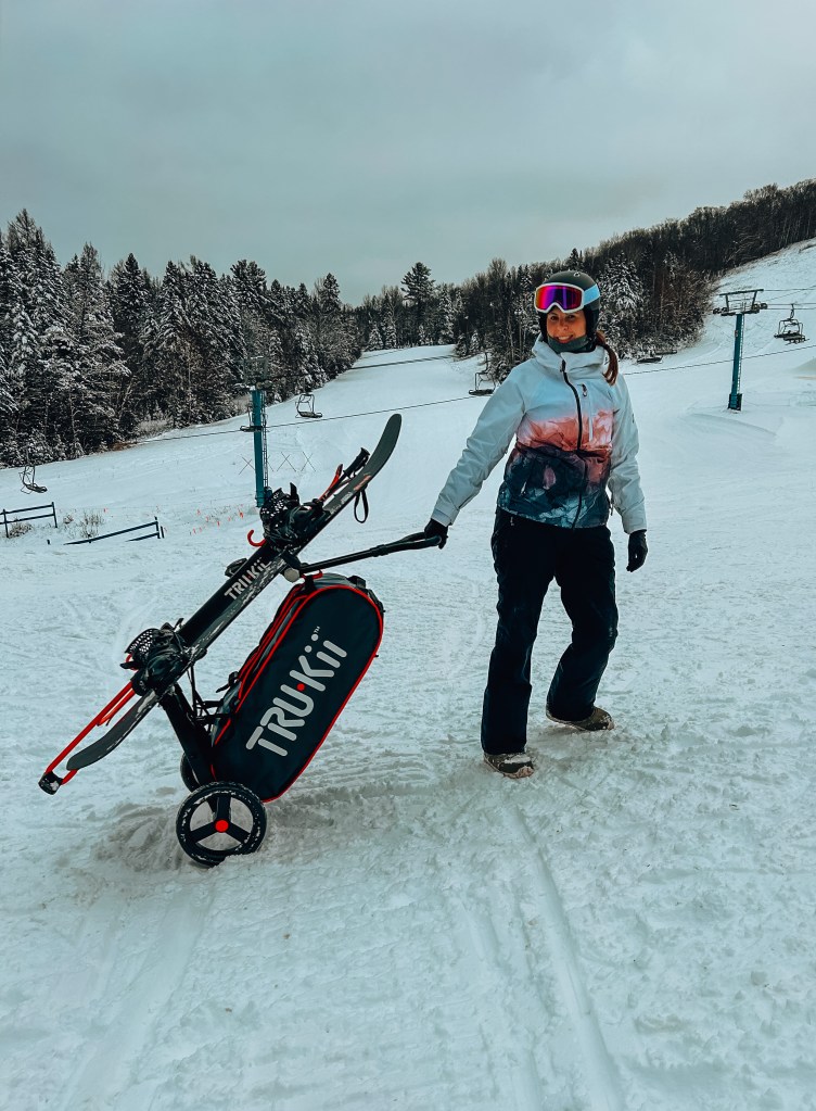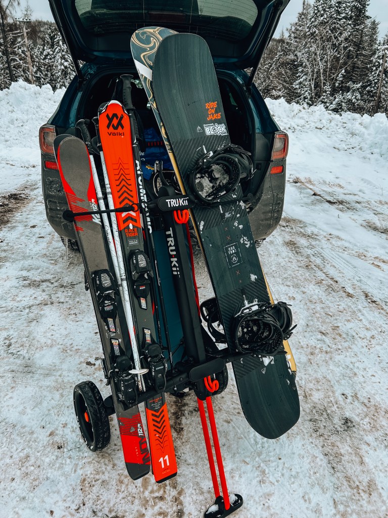 My favourite part about the TRU Kii is that it stands on its own. It’s essentially ski rack on wheels! This honestly was a game changer when we were loaded it up at the beginning of the day, and packing up the car at the end of the day.