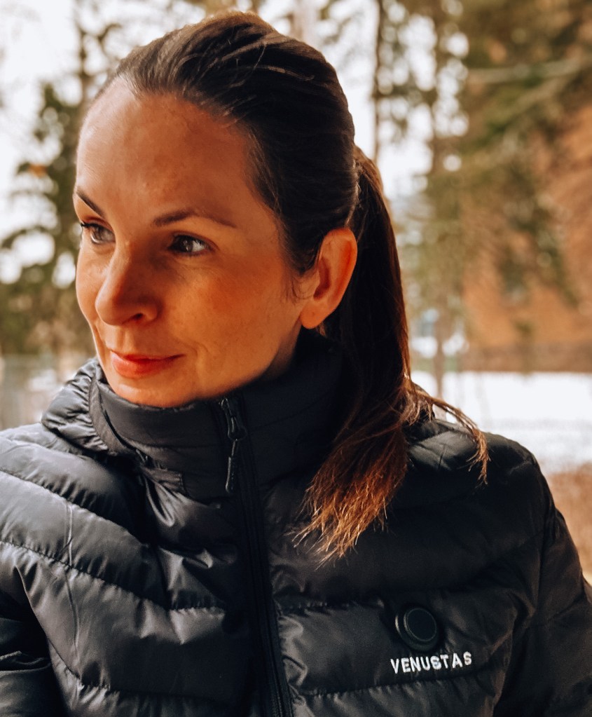 I wanted to give you my best Venustas Heated Jacket Review After Wear, so I really made sure to put this jacket through it’s paces to get a good feel for it. The Venustas Heated Jacket fits great, feels great, is durable and with its innovative heating technology, and long battery life, this jacket is great to wear on those cooler days and nights. Venustas usually has sales, and the jacket I own retails for about $179 regular price, but it’s often on sale for $125. Plus, Venustas gave me a promo code to share with you all give you an extra 15% off. Use promo code snowboardmom for 15% off.