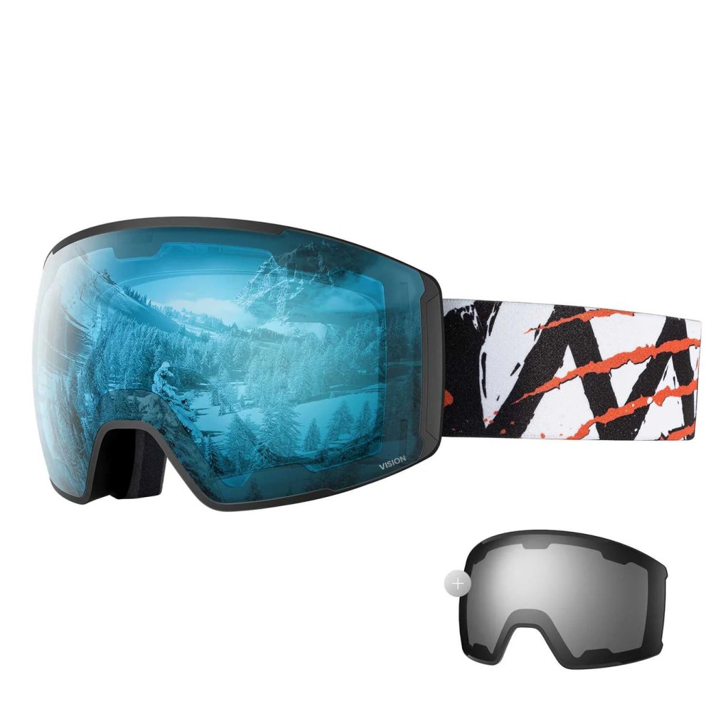 The vision goggles have an extra wide field of view thanks to the Toric lens, Vision snow goggles combines the low distortion of the cylindrical lens and the wide field of view of the spherical lens, allowing you to see more, and see clearer. (Another bonus for the Over the Glasses Goggles!)