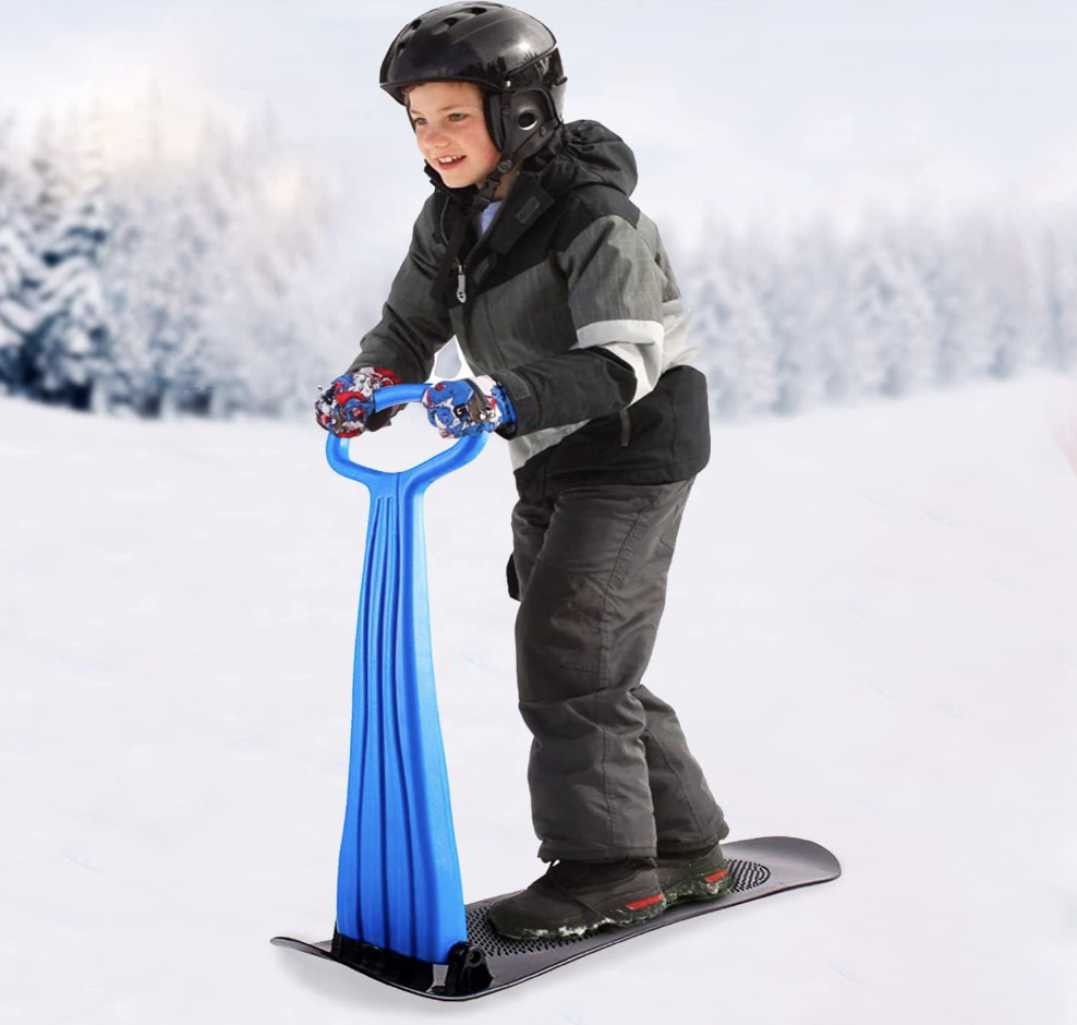 Looking for some fun activities to do with your ski and snowboard loving kids? I know that holiday break can be long, so getting them outside is KEY! This foldable snow-ski scooter is a fun thing to bring to the sledding hill during the holiday break!