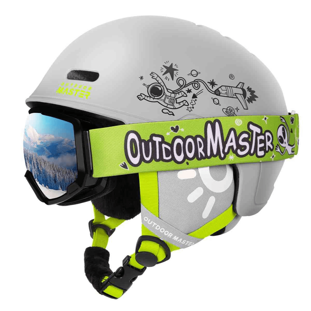 If your kids are a bit older, I would look at one of the MIPS helmets Outdoor Master offers like the Diamond MIPS Helmet. You’ll find that around the age of 7/8 your kids will start to fit in adult small helmets. Now to go with your fancy new helmet, you need some sweet goggles, and the Falcon Kids Ski goggles is where it’s at! Your kids will look ultra cool and have amazing visibility with a goggle that has an easy to swap lens.