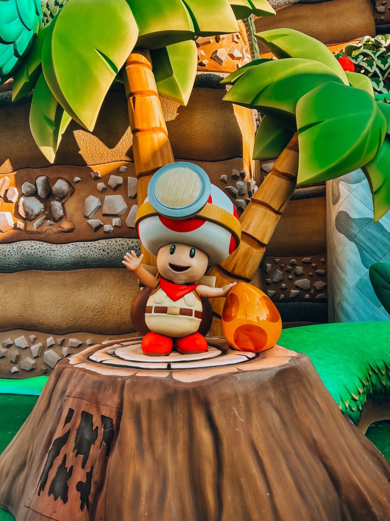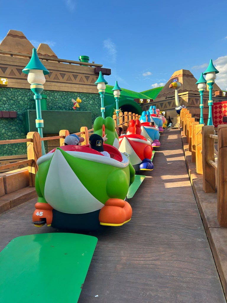 - Yoshi’s Adventure: It’s a very slow, cute omnimover. It’s great for 5-year-olds, but your 11-year-old will likely be bored within the first 30 seconds. There was a bit of challenge where you had to press the eggs when you saw them, but I didn’t really get that. I considered this one more of a tour of mario land vs. a ride. If the line is long and you don’t have express, I would skip.